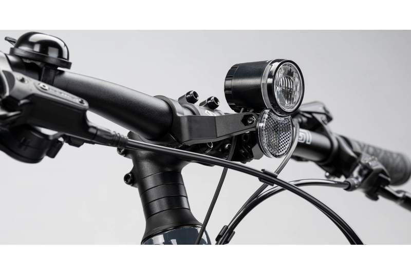 La e-bike ha sido equipada con todo lo que necesitas para moverte por la ciudad o por los caminos rurales. Incluye guardabarros EuroFender de 65mm, portaequipajes trasero Easylige con capacidad para 25 kg y un caballete central Ursus Mooi estable y muy resistente. También está equipada con iluminación homologada para uso urbano, con faro Trelock LS230 VEO de 20 Lux y piloto trasero AXA Juno E-bike, ambos alimentados por la batería central.